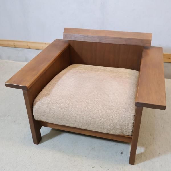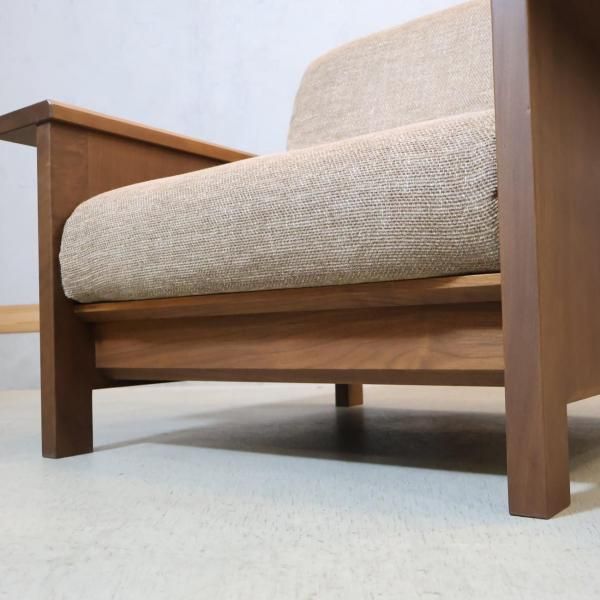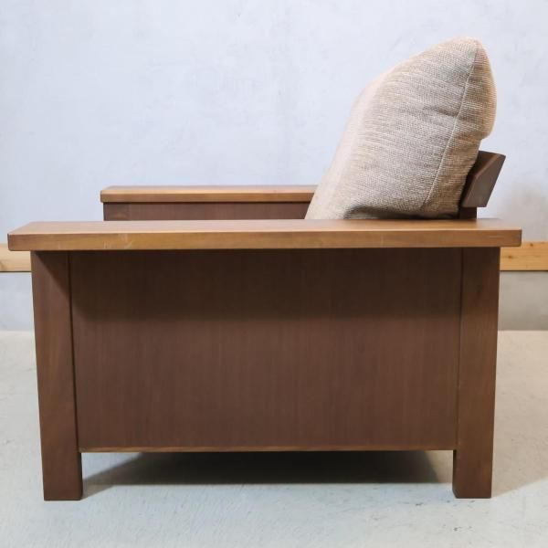 飛騨高山のメーカーshirakawa(シラカワ)のrevi(レヴィ) ウォールナット材 シングルソファ。和洋どちらにも溶け込む洗練されたデザインと心地よいふっくらとしたクッションのアームソファです♪