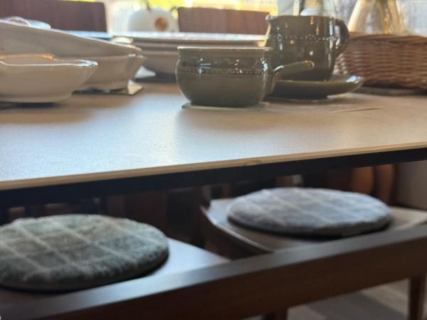 都会的で洗練されたデザインの脚は座るときに邪魔にならずテーブルを囲ってお食事ができ、