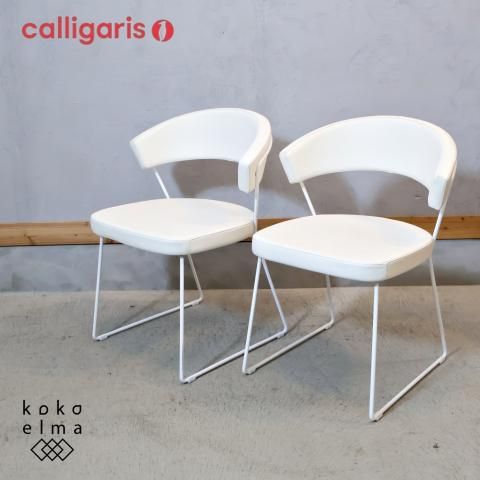 イタリアCalligaris(カリガリス)社の新たなラインconnubia(コヌビア)よりNEW YORK(ニューヨーク)ダイニングチェア 2脚セットです♪本革とスチールがモダンな印象の食卓椅子です☆