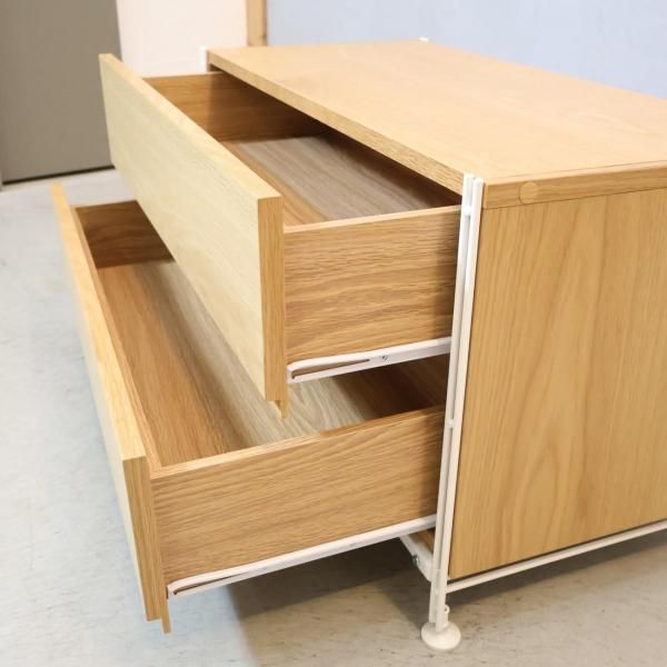無印良品(MUJI)の人気のユニットシェルフ 引出し付きです。シンプルなデザインのローボードはテレビボードやチェストとしても♪ナチュラルテイストやインダストリアルモダンなお部屋に!