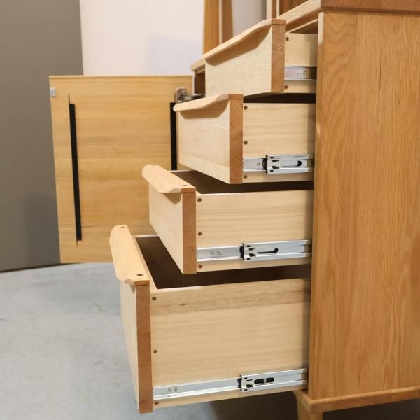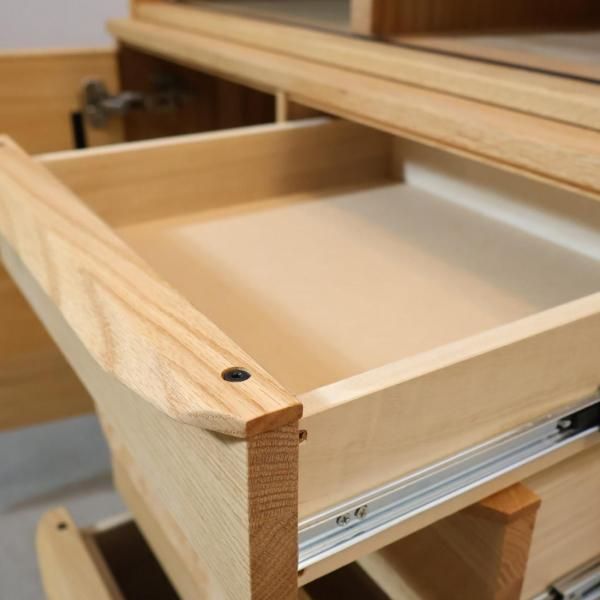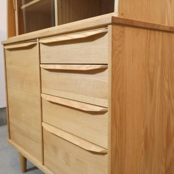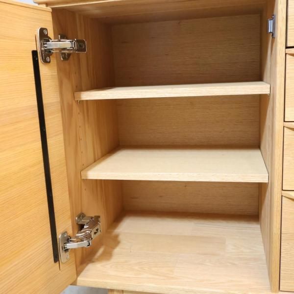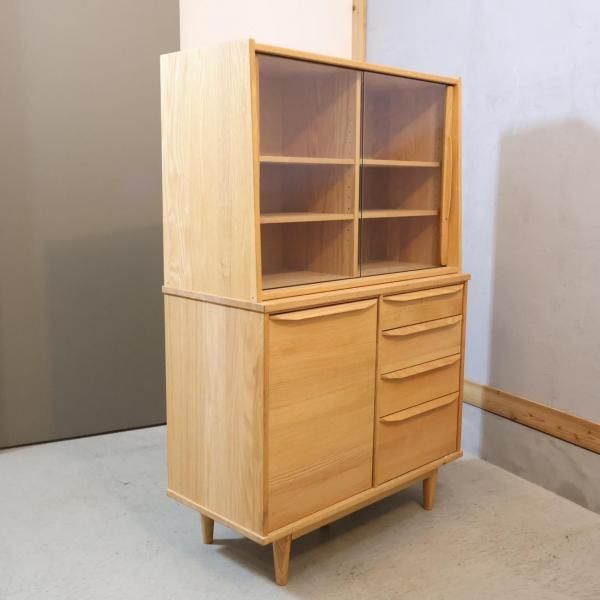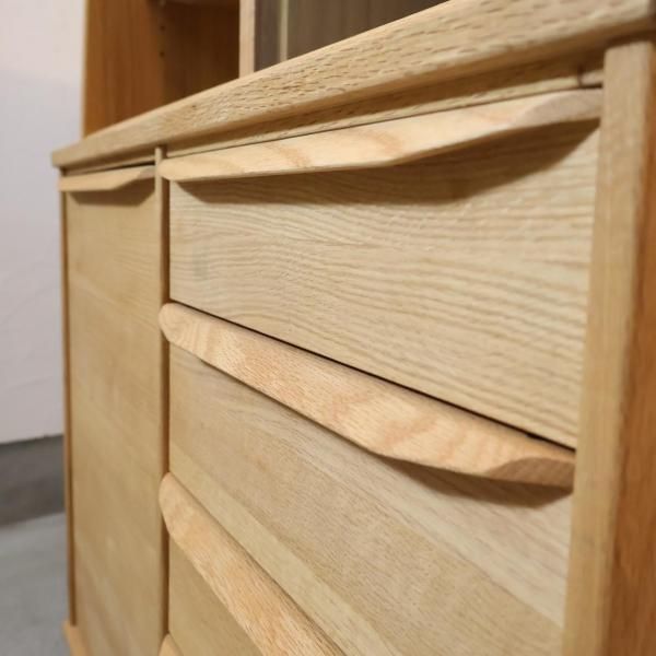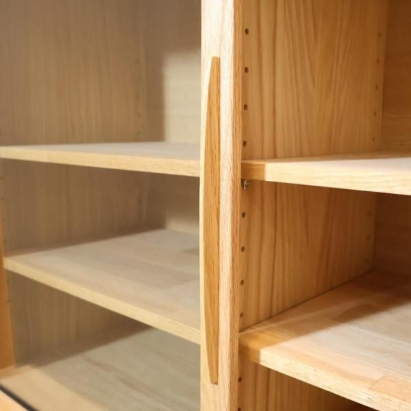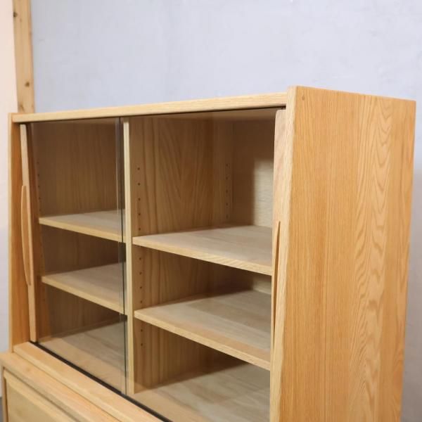 MOMO natural(モモナチュラル)のVENT カップボードです。オーク無垢材の食器棚はキッチンを明るく優しい印象に!低めのデザインが魅力のキッチンボードは収納力もあるのでリビングボードにも♪