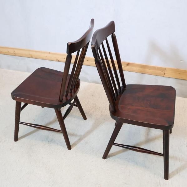 北海道民芸家具(HOKUMIN)のカバ無垢材を使用した、ダイニングチェア 2脚セットです。意匠の凝らされた、上品で洗練されたフォルムの木製椅子は和風なインテリアと相性抜群♪飛騨産業(キツツキマーク)