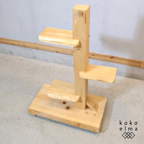 天然木無垢材の風合いを活かしたディスプレイラックです。小物や観葉植物を飾るのにピッタリな飾り棚。リビングや玄関先などのちょっとしたスペースを有効活用できます。