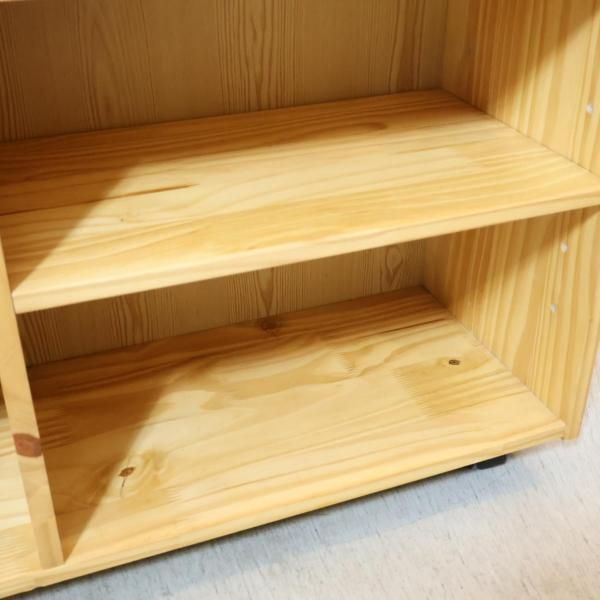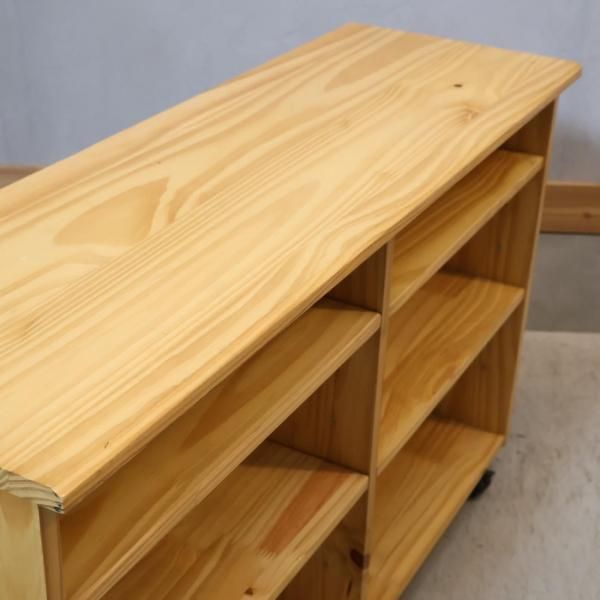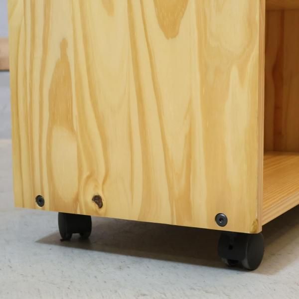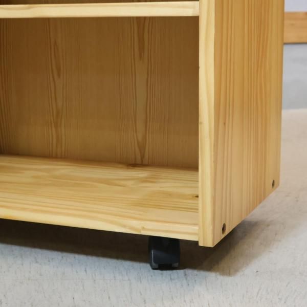 温もりを感じるパイン材を使用したキャスター付きラックです。ちょっとしたスペースを有効活用できる移動式オープンラック。どんなインテリアにも馴染みやすい飽きの来ないデザイン♪