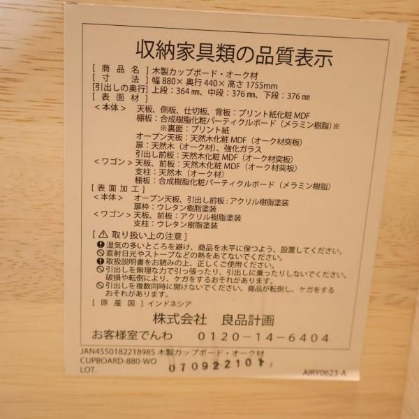 人気メーカー無印良品よりオーク材 カップボードのご紹介です。