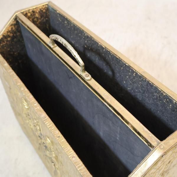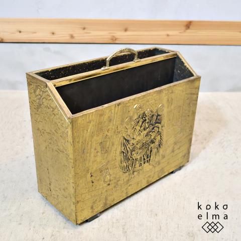 イギリスアンティークの真鍮 マガジンラックです。長い年月を経て美しい風合いに仕上がった真鍮の質感とゴールドの輝きが存在感を放つラックは、インテリアをエレガントな空間に。ディスプレイ用や店舗什器にも♪