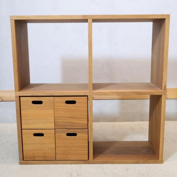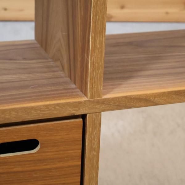 人気の無印良品(MUJI)のウォールナット材・2段・2列・スタッキングシェルフ/引出し付きです!オープンタイプの万能棚。スリムなのでリビングなどのちょっとしたスペースや本棚としても活躍します♪