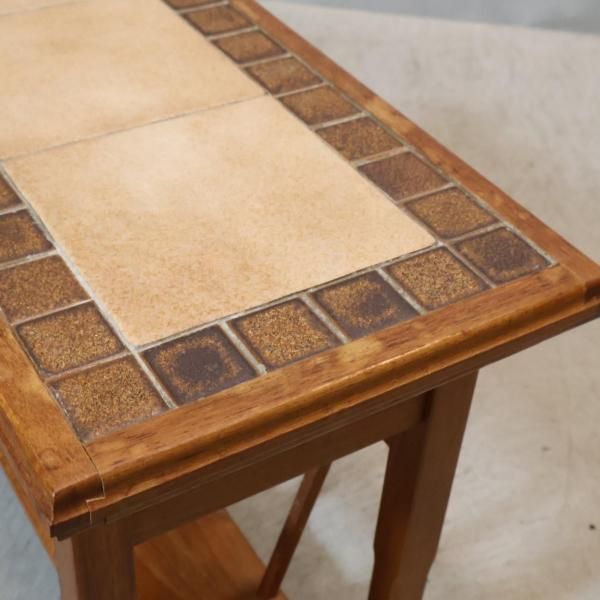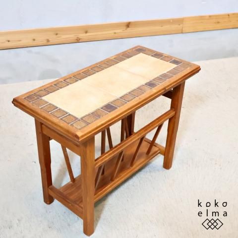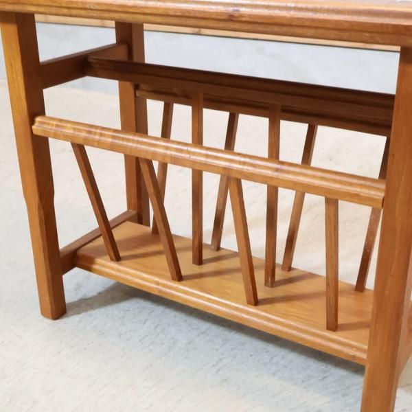 イギリスのメーカー”AnberCraft(アンバークラフト)”によるタイルトップのチーク材 サイドテーブルです。ヴィンテージのマガジンラック付きテーブルは、北欧家具などのインテリアにもマッチ♪