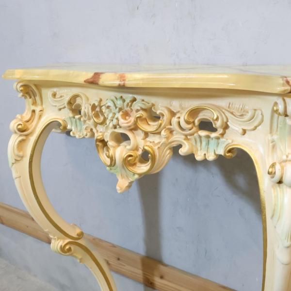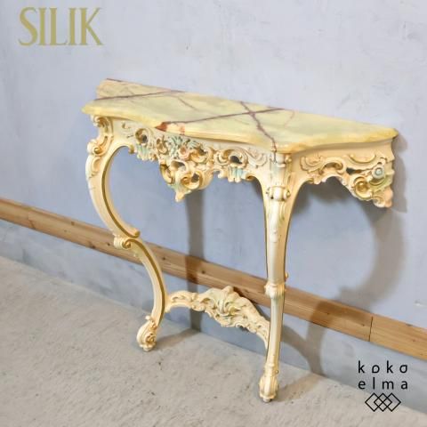 イタリアの老舗装飾家具メーカー SILIK(シリック)のコンソールテーブルです。アンティーク調のクラシックな装飾と大理石天板がエレガントな佇まいのホールテーブル。上品なヨーロピアンテイストに♪