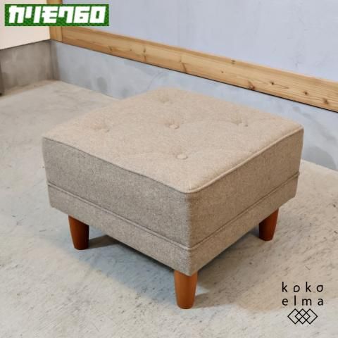 カリモク60より希少な限定モデル フラノベージュ+チェリー材 オットマンです。北欧スタイルのレトロなデザインが魅力のコンパクトなスツール♪カフェスタイルやヴィンテージテイストに♪