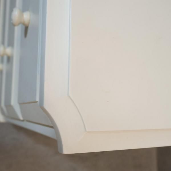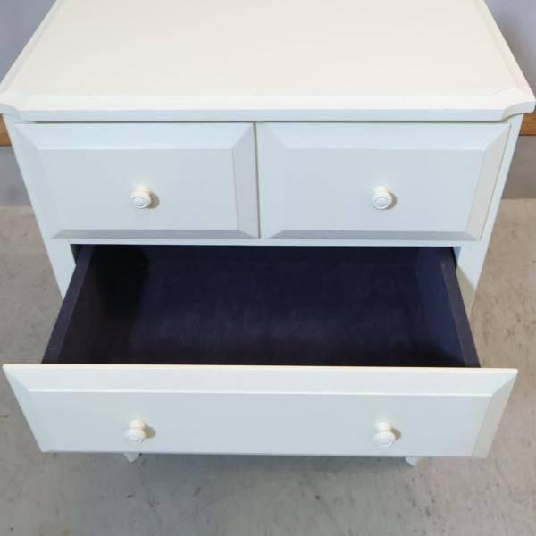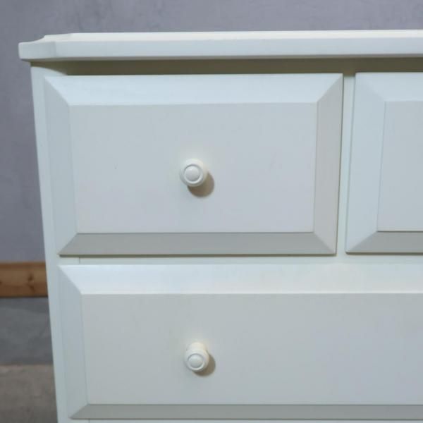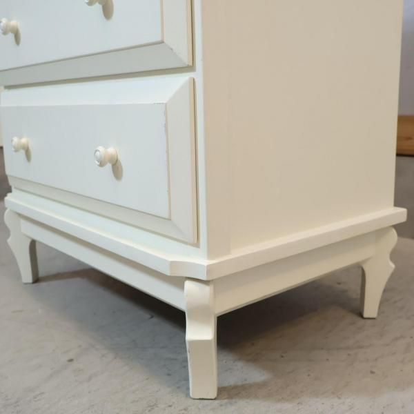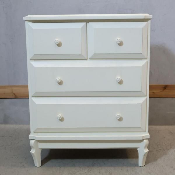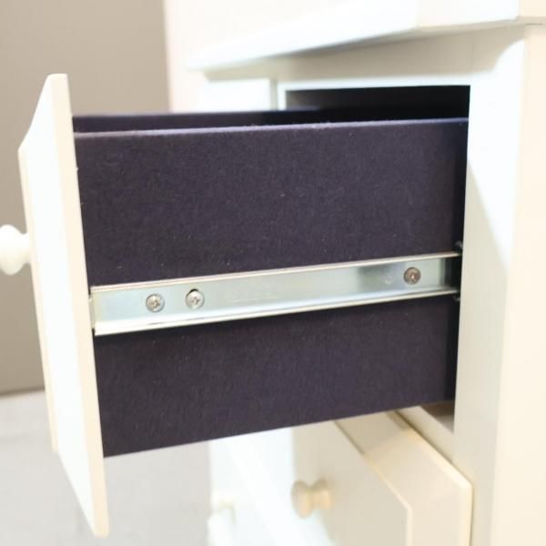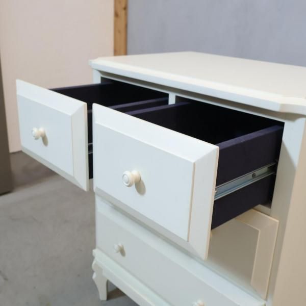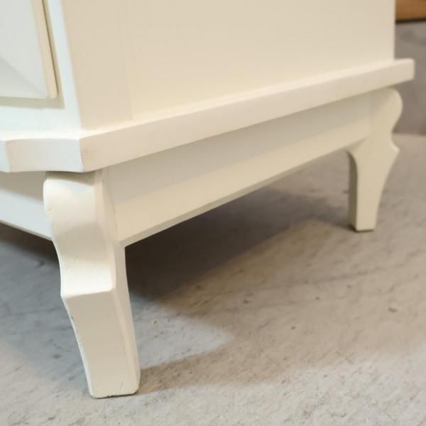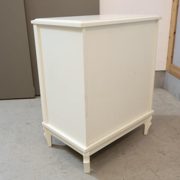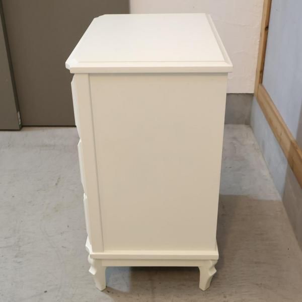 人気のFrancfranc(フランフラン)のFEMME(ファム)シリーズ 3段チェスト。清潔感のあるホワイトカラーが魅力のアンティーク調ドロワーはインテリアのアクセントにおススメのキャビネットです♪
