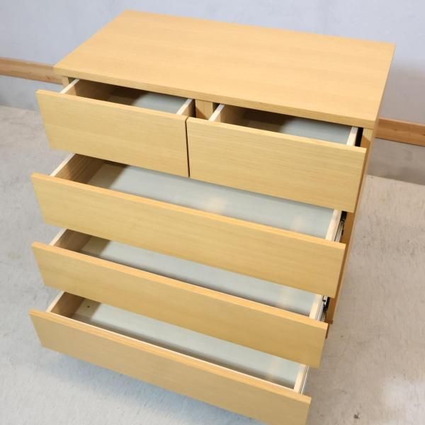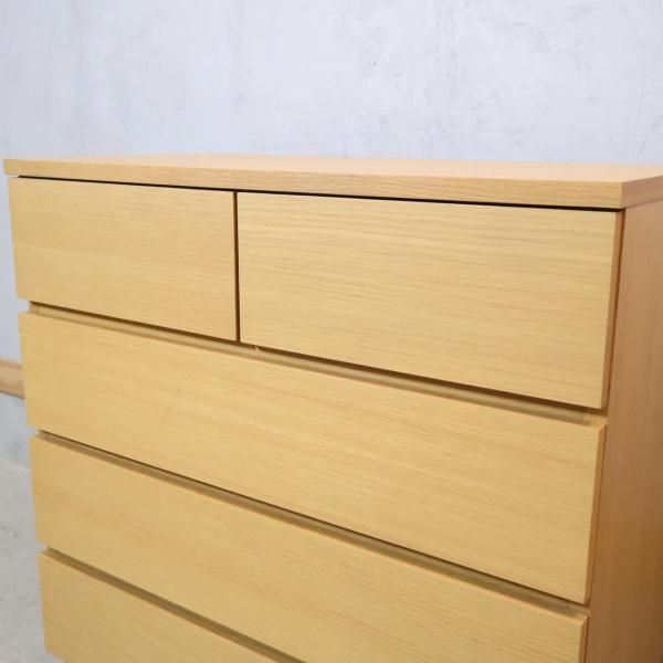 人気の無印良品(MUJI)のオーク材を使用したチェスト・4段ワイド!ナチュラルで明るい色合いが暖かな雰囲気の北欧スタイルインテリアにも♪収納力もあるので1人暮らしなどこれからの新生活に♪