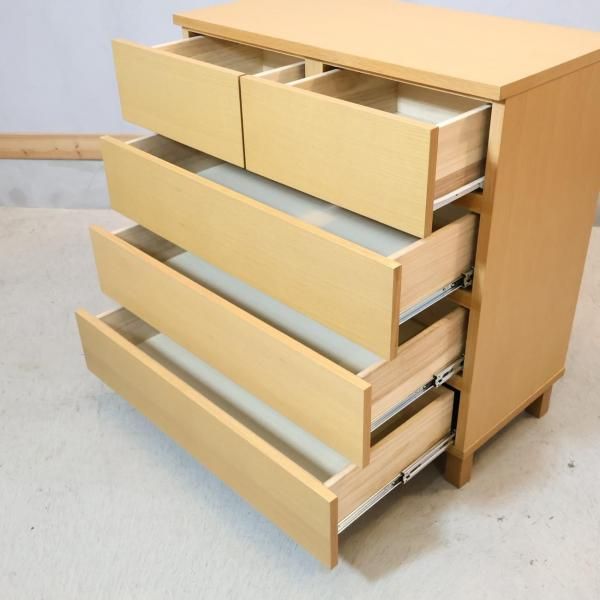 人気の無印良品(MUJI)のオーク材を使用したチェスト・4段ワイド!ナチュラルで明るい色合いが暖かな雰囲気の北欧スタイルインテリアにも♪収納力もあるので1人暮らしなどこれからの新生活に♪