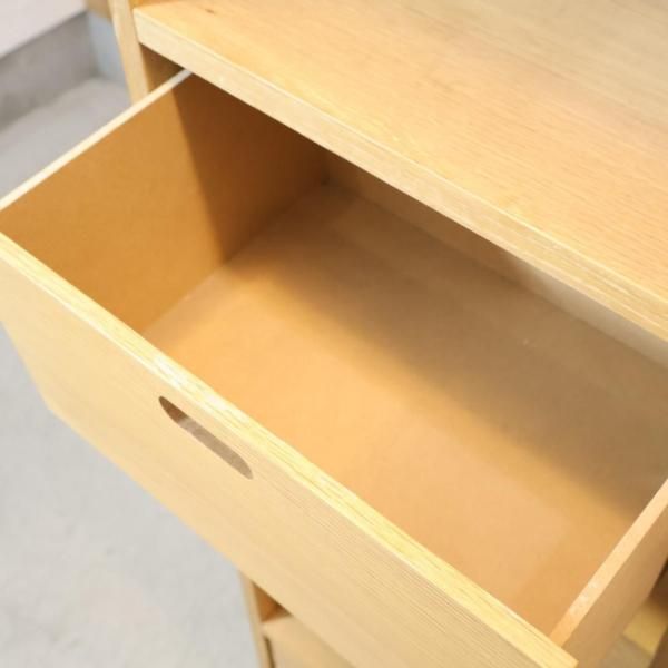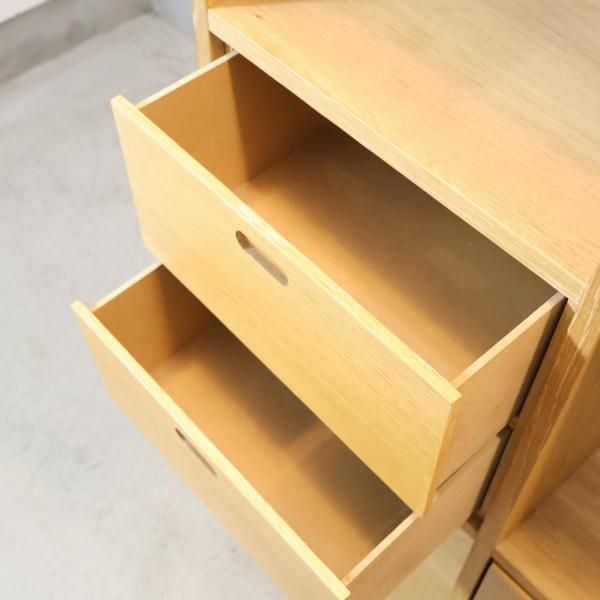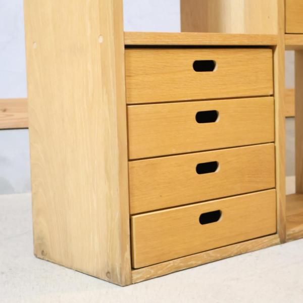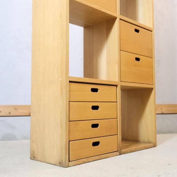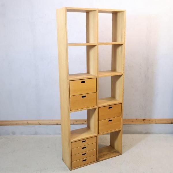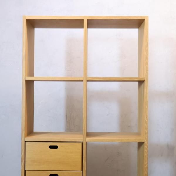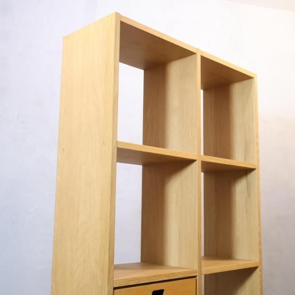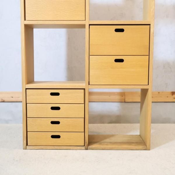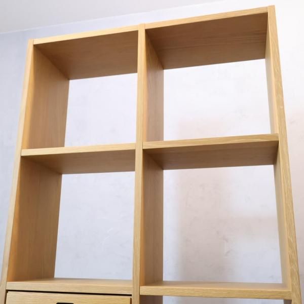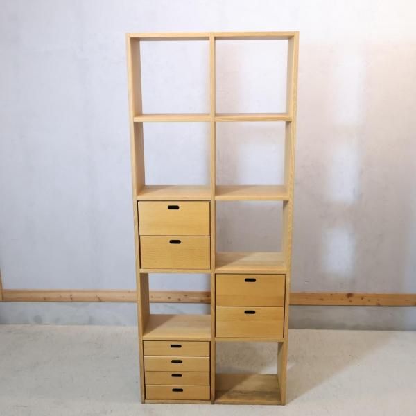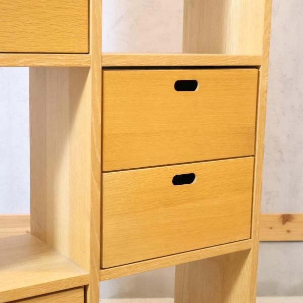 人気の無印良品(MUJI)のオーク材 5段・2列スタッキングシェルフ/引出し付です。追加棚で用途に応じてカスタマイズ可能な万能シェルフ♪リビングや寝室、子供部屋の本棚などにもおススメです!