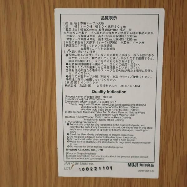 無印良品(MUJI)の人気のオーク材ダイニングテーブル!!80cmのコンパクトなサイズとシンプルで無駄のないデザインは2人暮らしにもおススメな北欧スタイルの木製テーブルです♪