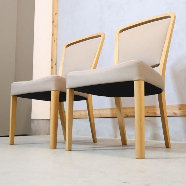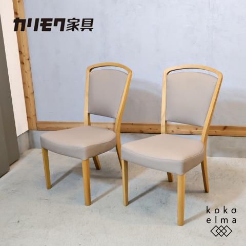 karimoku(カリモク家具)のダイニングチェアー 2脚セット。シンプルで柔らかなフォルムの食堂椅子はオーク材の温かみが感じられる北欧スタイルのデザイン。便利な手掛け付きで出し入れしやすいのも魅力♪
