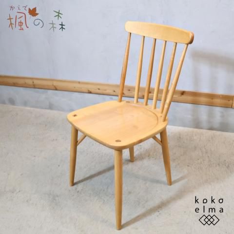 MIKIMOKU(ミキモク)のメープル無垢材を使用したナチュラルなシリーズ"楓の森"のダイニングチェアです。ウィンザータイプのクラシカルなデザインと座面のクサビが特徴的な木製椅子♪