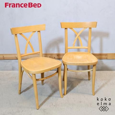 France Bed(フランスベッド)のベントーネ ベントウッドチェア2脚セットです。曲木を使用した丸みを帯びたフォルムのレトロなサイドチェア。どんな空間にも合わせやすいナチュラルな質感♪
