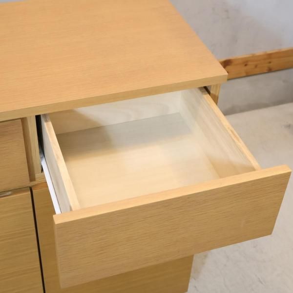人気の無印良品(MUJI)のオーク材 キャビネット大・木製扉!ナチュラルで明るい色合いのサイドボード。収納力もあり北欧スタイルインテリアにもおススメのリビングボードです♪