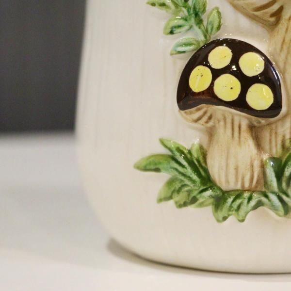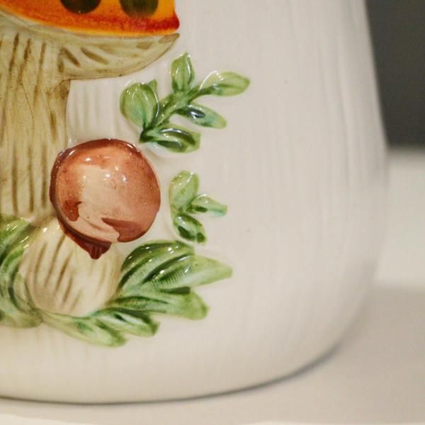 キノコが愛らしいレトロな雰囲気満点のキッチンポット。