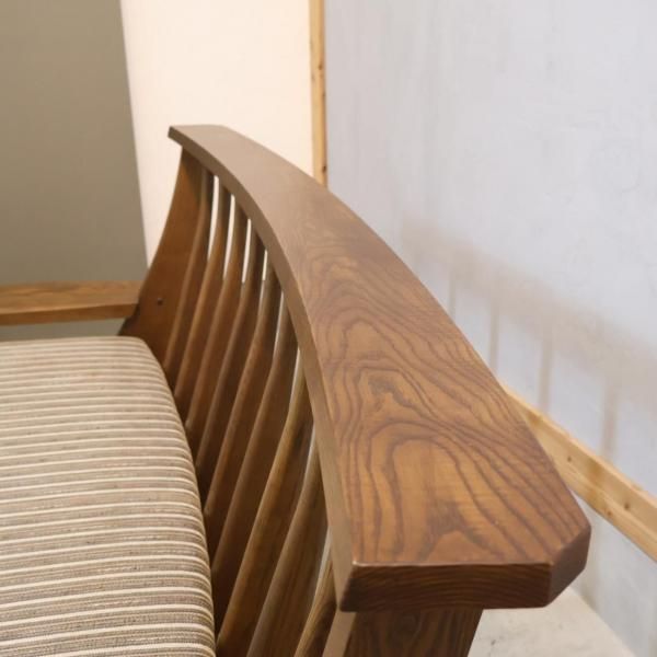 HAYAMA GARDEN(葉山ガーデン)で取り扱われていたタモ無垢材を使用したWAZA 2Pソファーです。全体に弧を描いた和モダンデザインの2人掛けソファー。幅広のアームはサイドテーブルにも♪