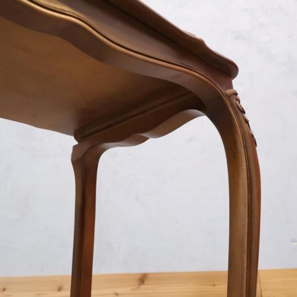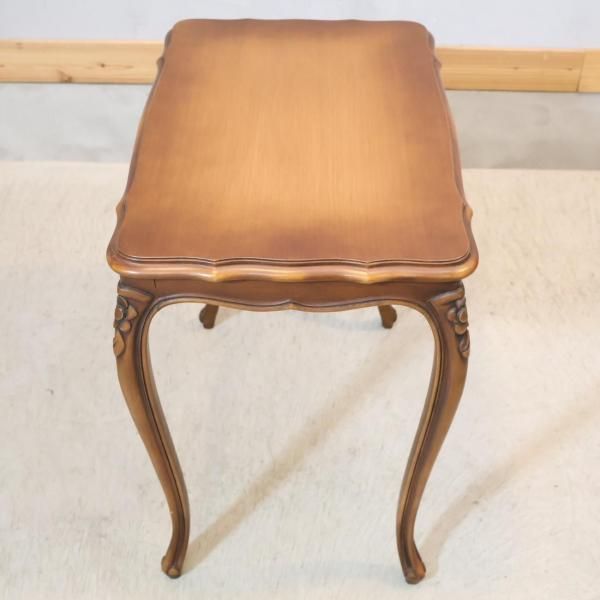 アンティーク調の猫脚 サイドテーブルです。落ち着いた色合いや品格のある曲線美が、上品な印象を演出してくれるローテーブル。寝室やソファサイドはもちろん玄関などにも。花台や飾り台としてもオススメです♪