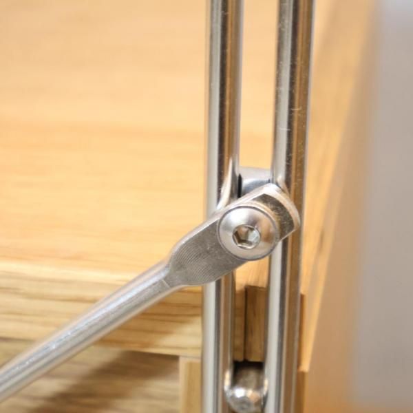 ステンレスの無機質な質感とオーク材のナチュラルな質感が
