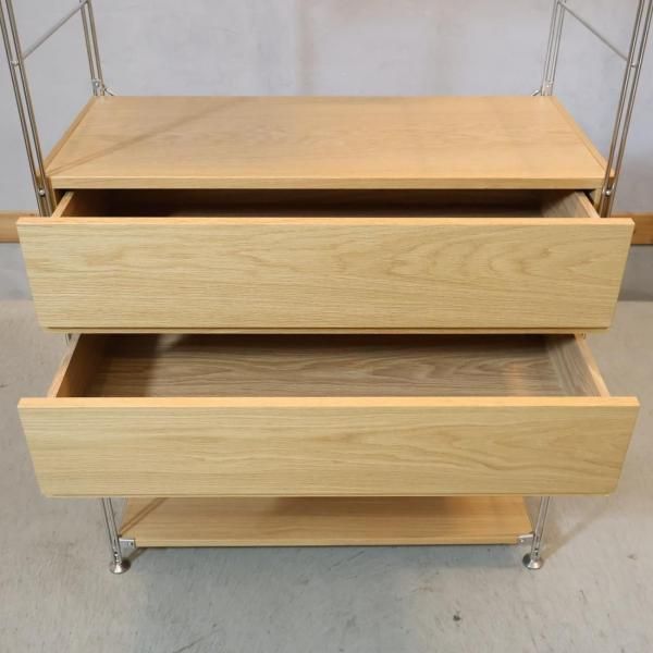 2段ドロワー付なので1人暮らしの方やリビング・キッチン収納にもおススメのシェルフ。