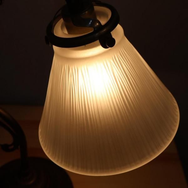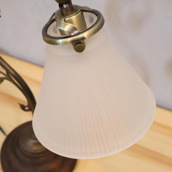 ヨーロッパアンティークのようなガラスシェードと植物をモチーフにした装飾が
