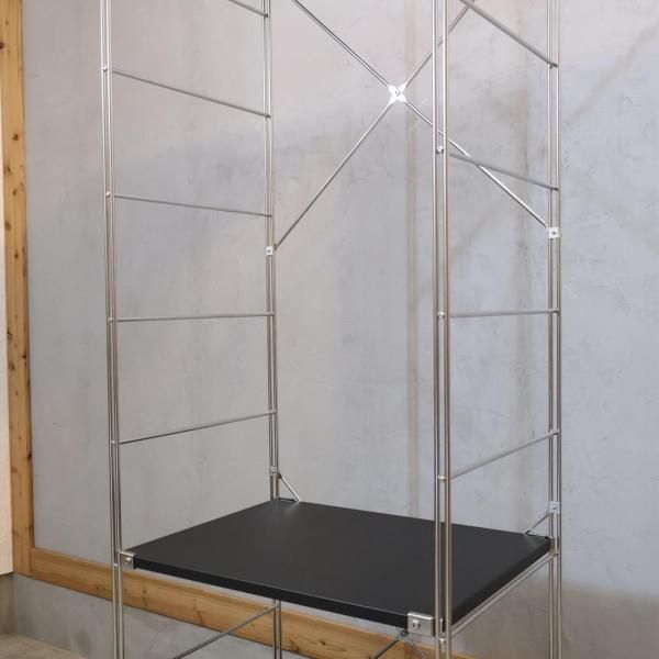 商品名  ステンレスユニットシェルフ/ダークグレー ワードローブバー付き