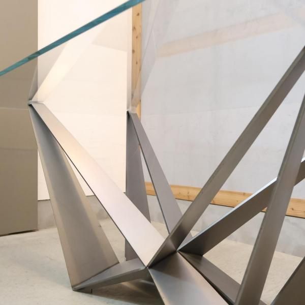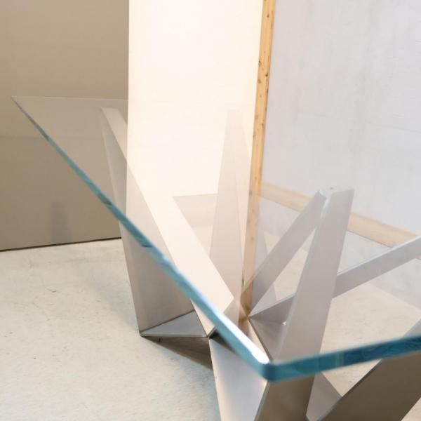 まるで現代アートのオブジェのように見る角度によって表情を変えるモダンなテーブルは、