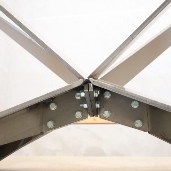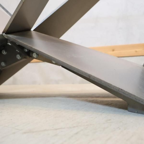 スチールの重厚なベースは存在感がありながらも、奥行を感じさせる立体的なシェイプは