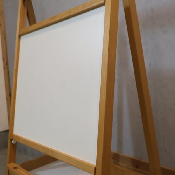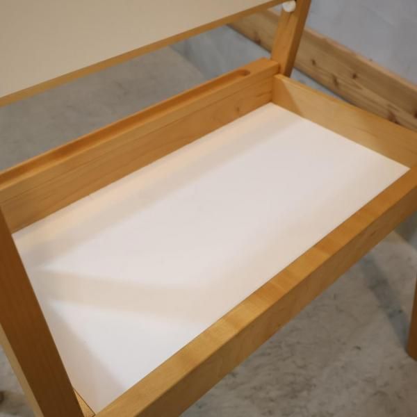 北海道旭川のメーカーcosine(コサイン)のお絵描きシェルフです。メープル無垢材を使用したロール紙と画板付き子ども用イーゼル。成長や用途に合わせてトレー付きハンガーラックとしても♪