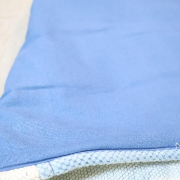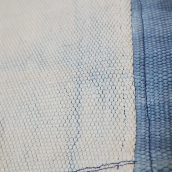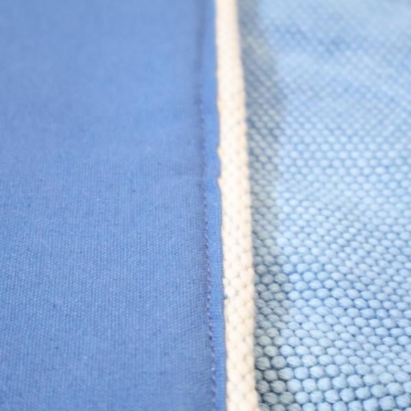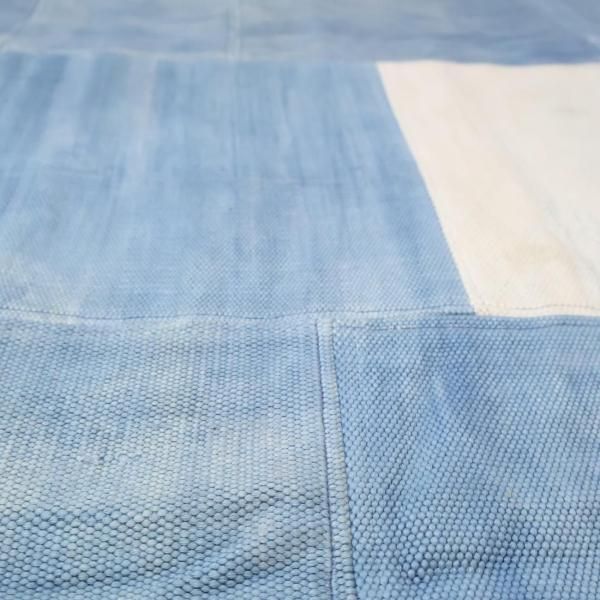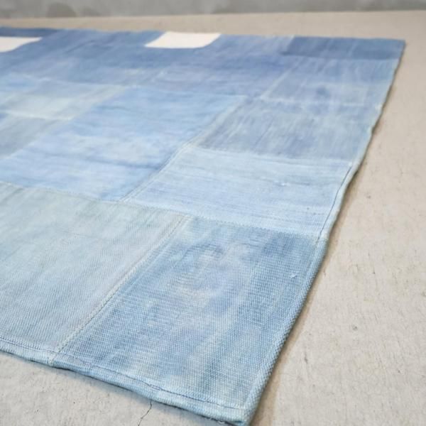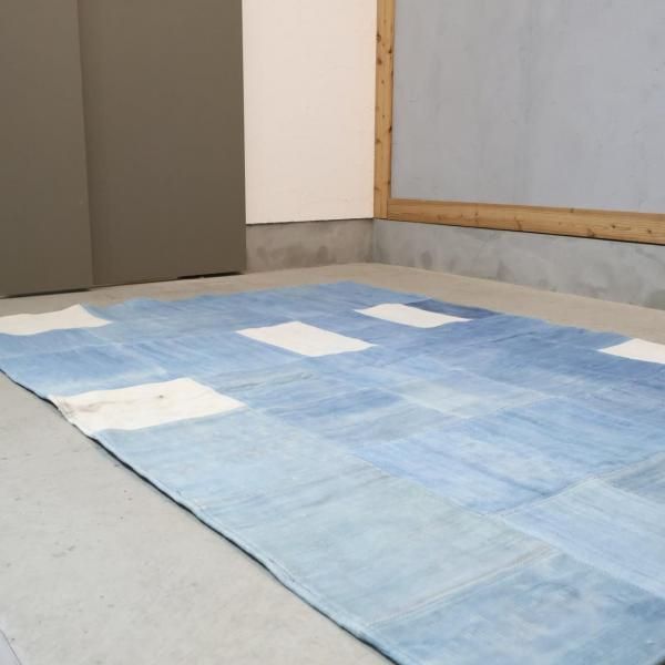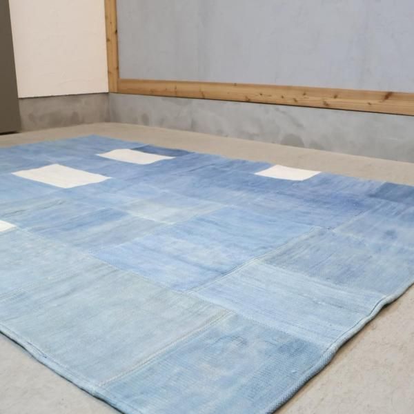 CRASHGATE(クラッシュゲート)のデニムパッチラグ。コットンで織りあげたブルーカラーの生地を異なるトーンでランダムにつなぎ合わせたユニークなデザイン。西海岸やヴィンテージテイストに◎/RugRu