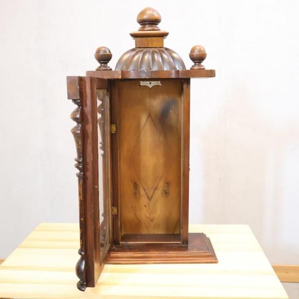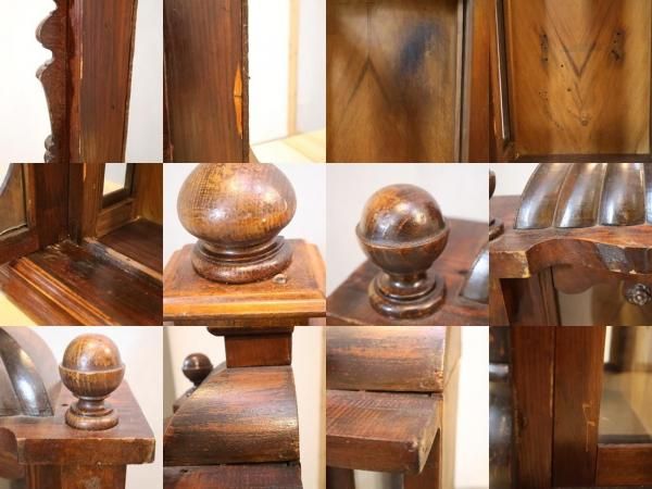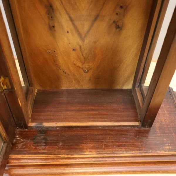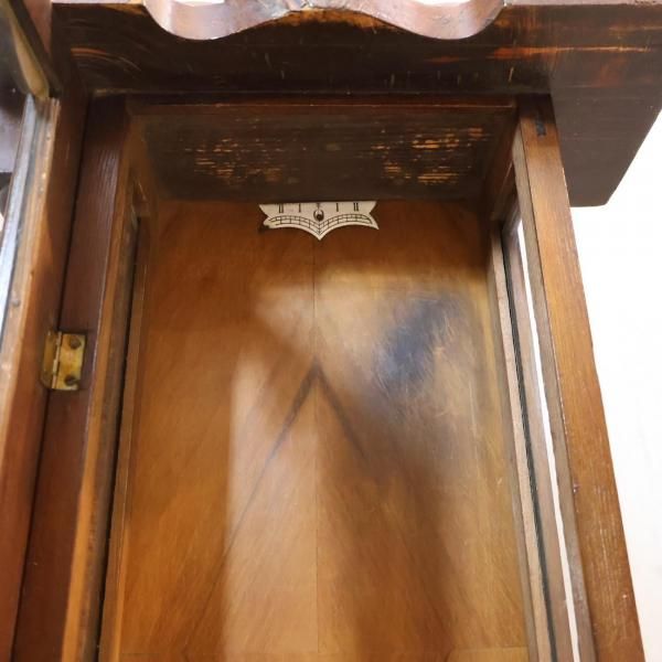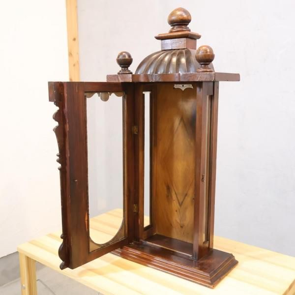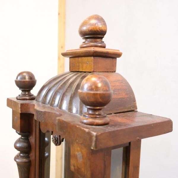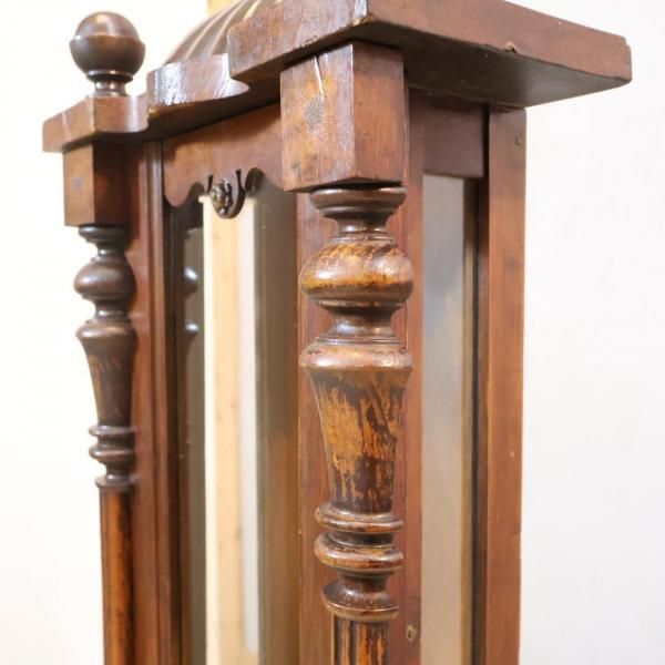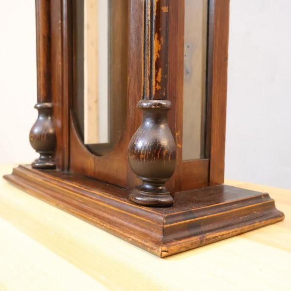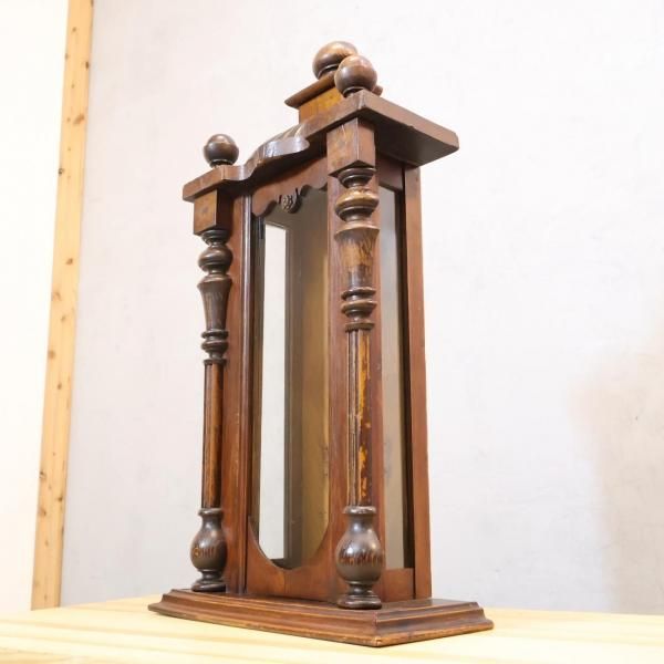 アンティーク調の時計キャビネットです。クラシカルな雰囲気と使い込まれた風合いが魅力のケースはヴィンテージスタイルなお部屋のアクセントや店舗什器としてもオススメです♪