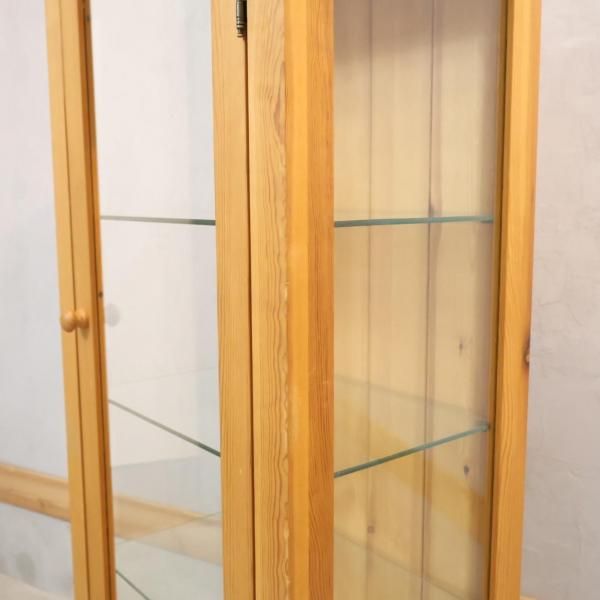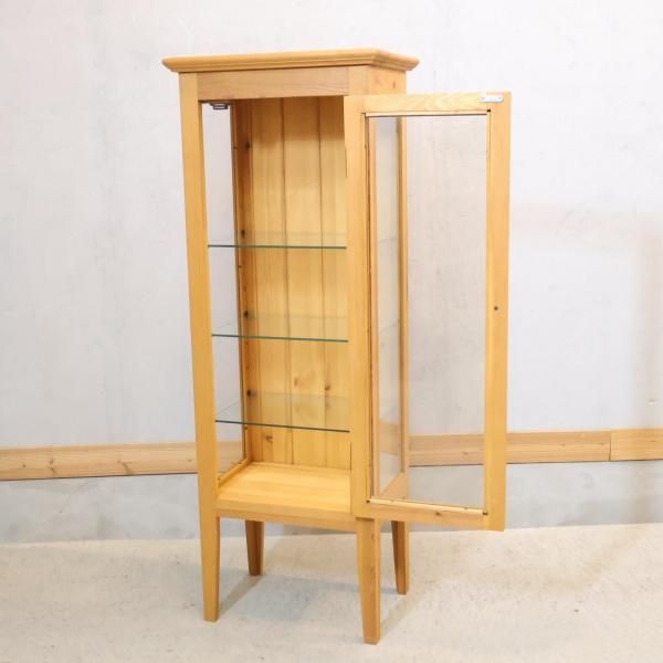 広島の家具メーカー AIROS JAPAN(アイロスジャパン)のパイン材 キュリオケースです!ナチュラルな質感が魅力の飾り棚。3面ガラスなのでお気に入りをコレクションするショーケースとしても♪