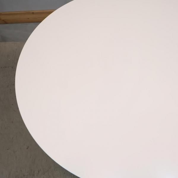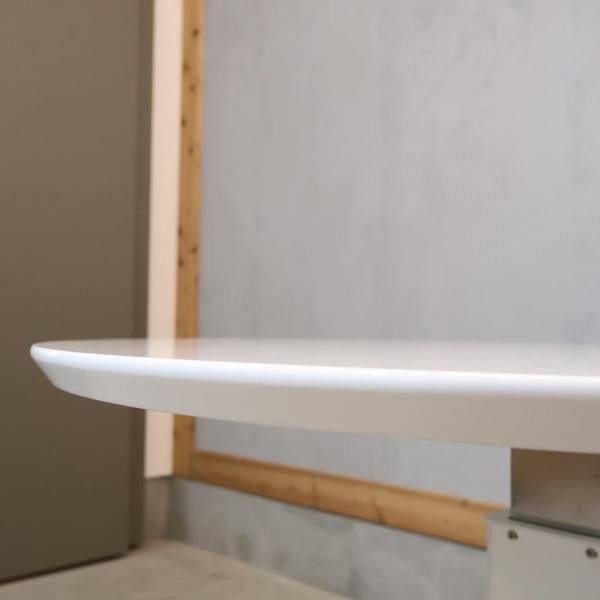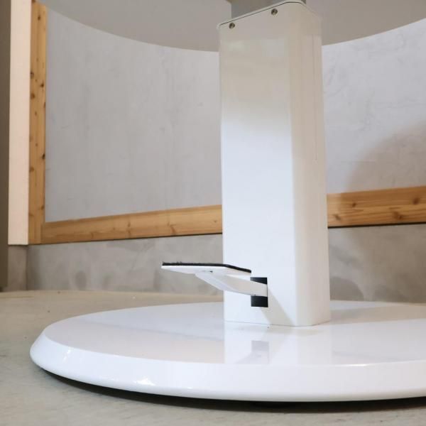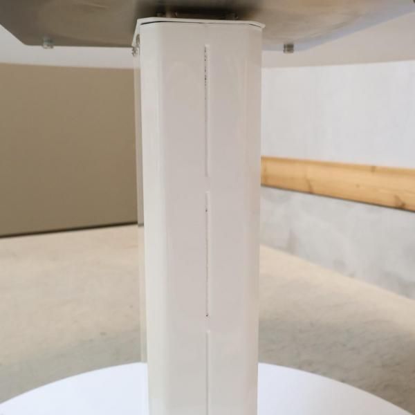 Dinos(ディノス)の丸型昇降テーブルです。リビングでもダイニングでも使える高さ調整可能なリフティングテーブル。在宅ワークやPCデスクとしても◎