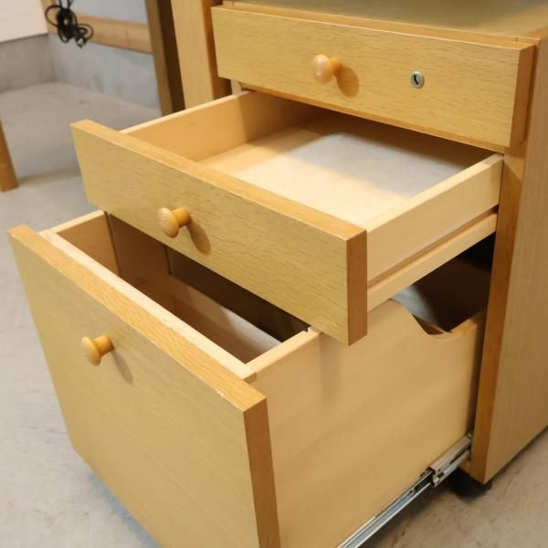 karimoku(カリモク)のBuona scelta(ボナ シェルタ) オーク材 パーソナルデスクとワゴンです。北欧テイストのスッキリとしたスマートなデザインは事務机やお子様の学習机におススメです♪