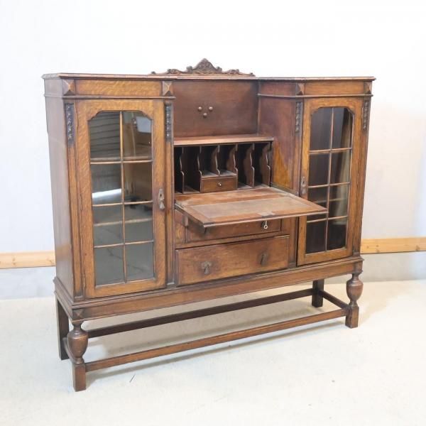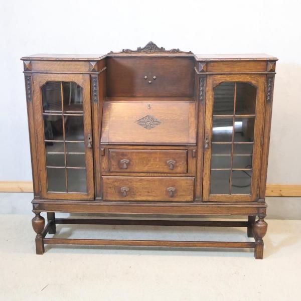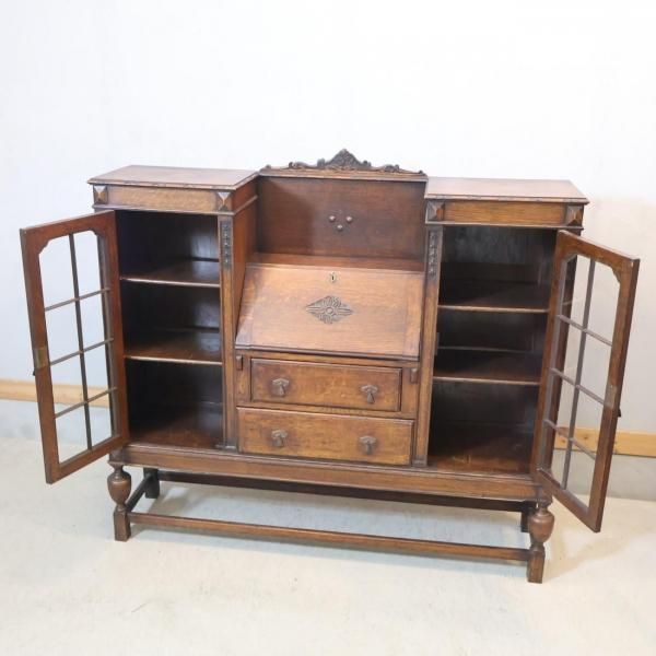 英国アンティーク家具を取り扱う、LLOYD'S ANTIQUES(ロイズ・アンティークス)で取り扱われていたサイドバイサイドです。両サイドの本棚と中央のビューローが一体化したクラシックな収納家具。