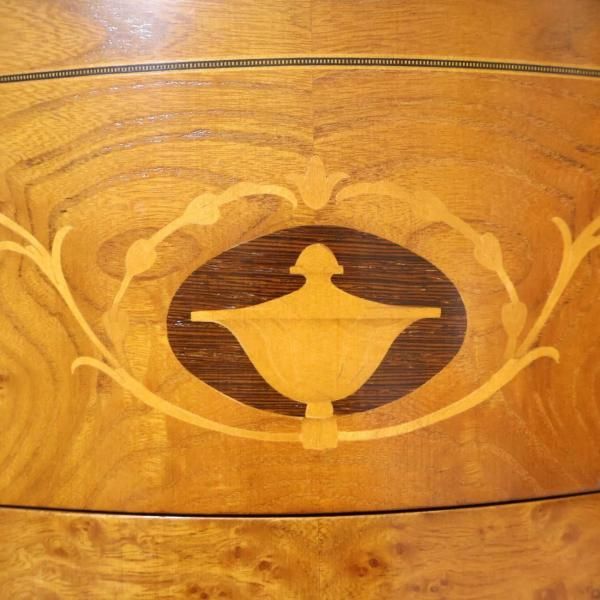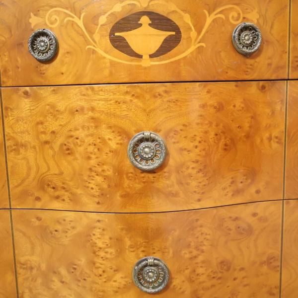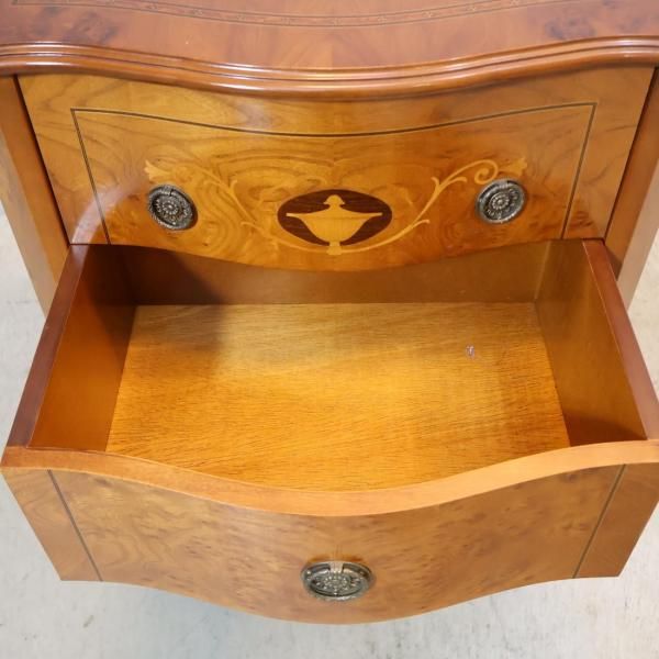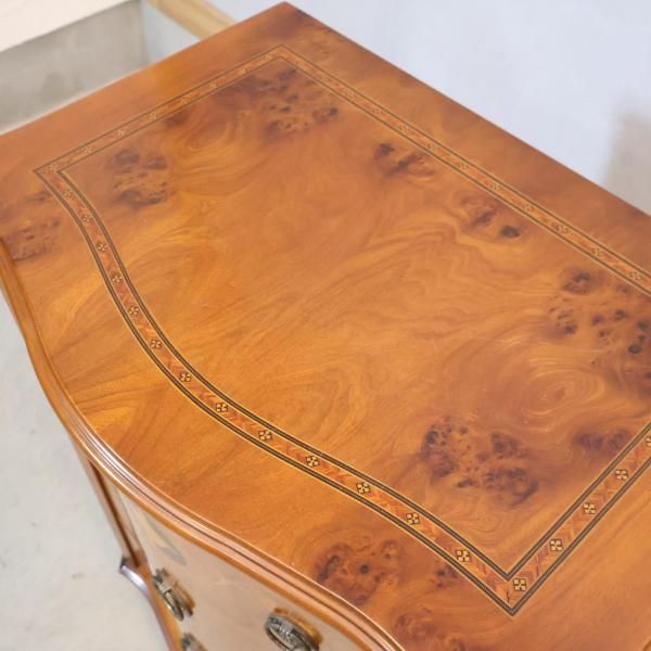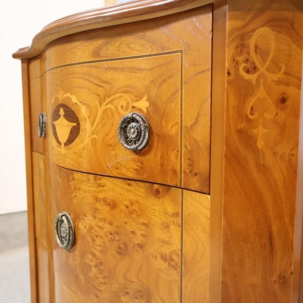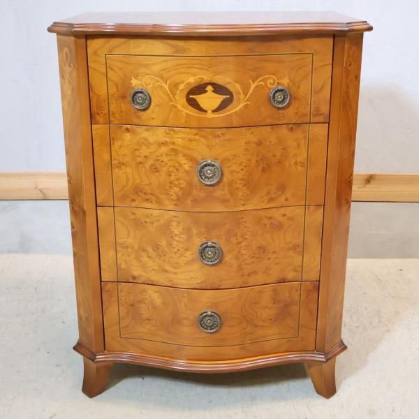 アンティーク調のウォールナット材 4段チェスト。エレガントな象嵌細工の洋タンスはクラシックなデザインで、アンティーク調の取っ手がアクセントに♪お部屋をロマンチックに演出してくれます/イタリア