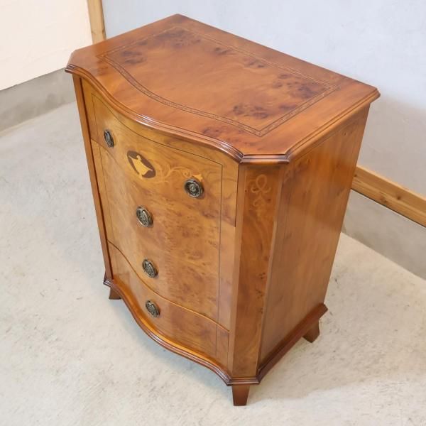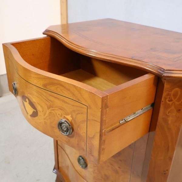 象嵌細工が美しいアンティーク調の4段チェストのご紹介です。