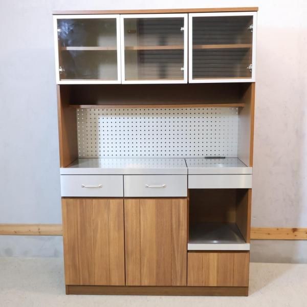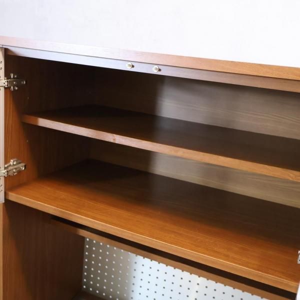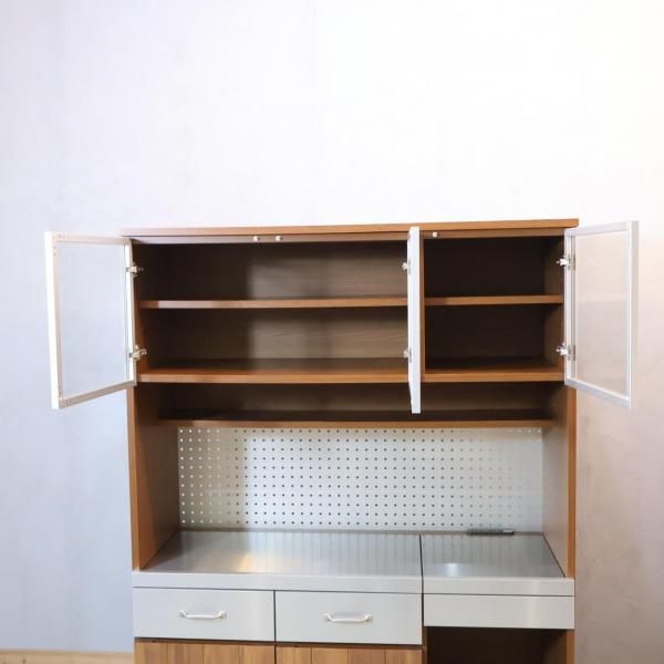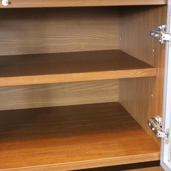 上段はガラス収納、中段はスライド可能なオープンスペース、下段は引き出しと収納量も多く機能的なデザインです。