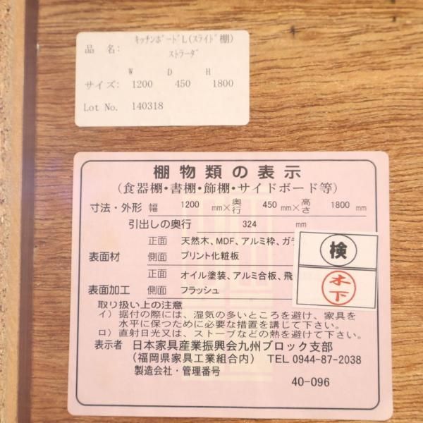 サイズ  幅/120×奥行/45×高さ/180 cm