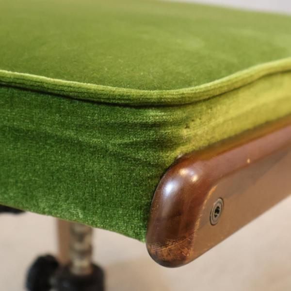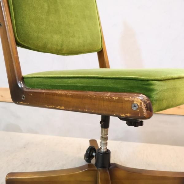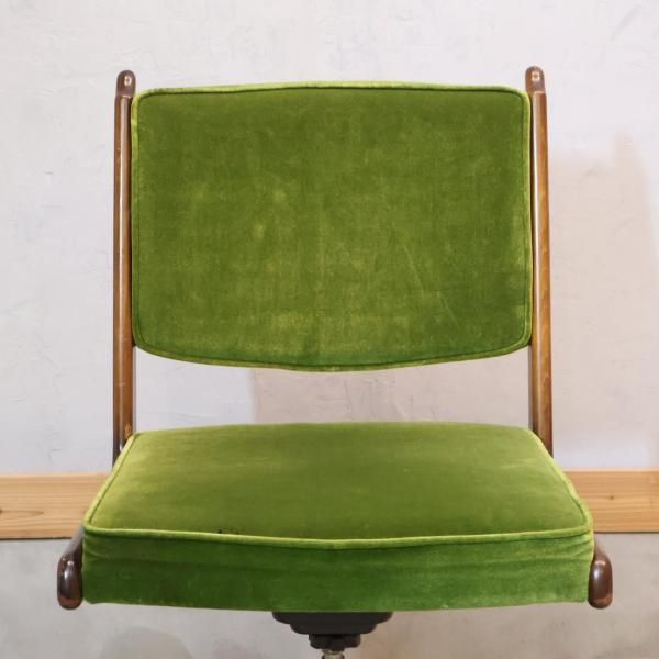 Karimoku(カリモク家具)のCOLONIAL(コロニアル)シリーズ デスクチェアです。アメリカンカントリースタイルのクラシカルなデザインとモケットグリーンがオシャレなキャスターチェア♪