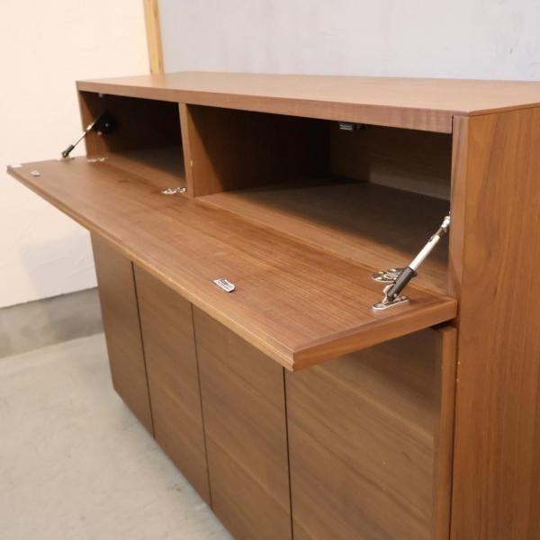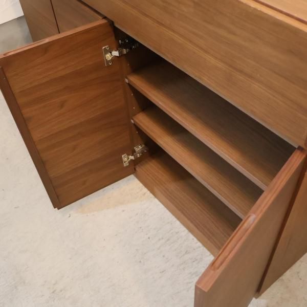 ACTUS(アクタス)のSHINE(シャイン) キッチンカウンターです。ウォールナット材の落ち着きのある色合いと直線的でシンプルなデザインが魅力的。収納力もありサイドボードとしてもおススメです♪