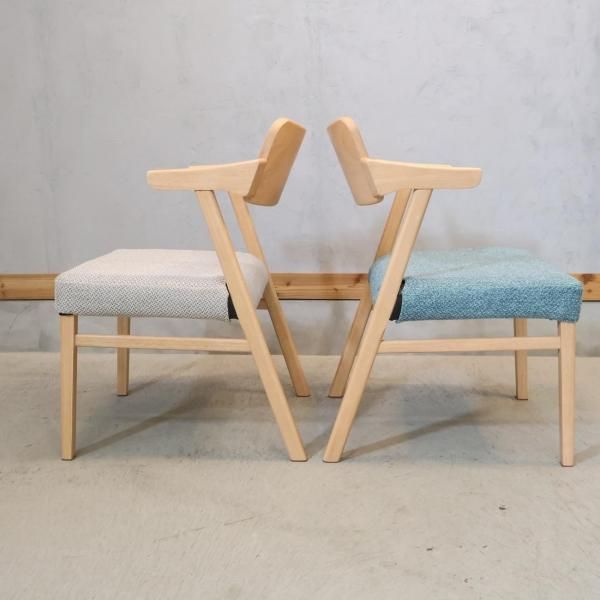 明るい木肌で優しい印象のセミアームチェア。