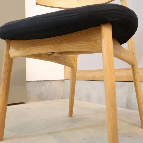 包み込むような形状の背もたれが特徴のゆったりとした座り心地のダイニングチェア。