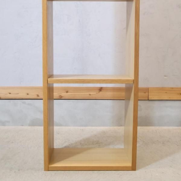 人気の無印良品(MUJI)のオーク材 3段・1列スタッキングシェルフ 引き出し付きです!用途に応じてカスタマイズ可能な万能シェルフ♪コンパクトなのでリビングや寝室、子供部屋の本棚などにもおススメです!