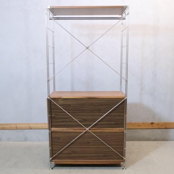 商品名  ウォールナット材×ステンレス ユニットシェルフ/引出し・ワードローブバー付